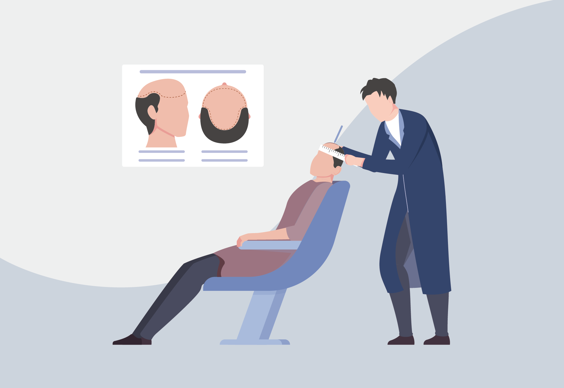 專業髮型師為顧客量度脫髮區域,進行倒模試戴,如有適合現貨,可即時進行下一步驟。如未能匹配現貨尺寸可度身訂製,需時一個月。